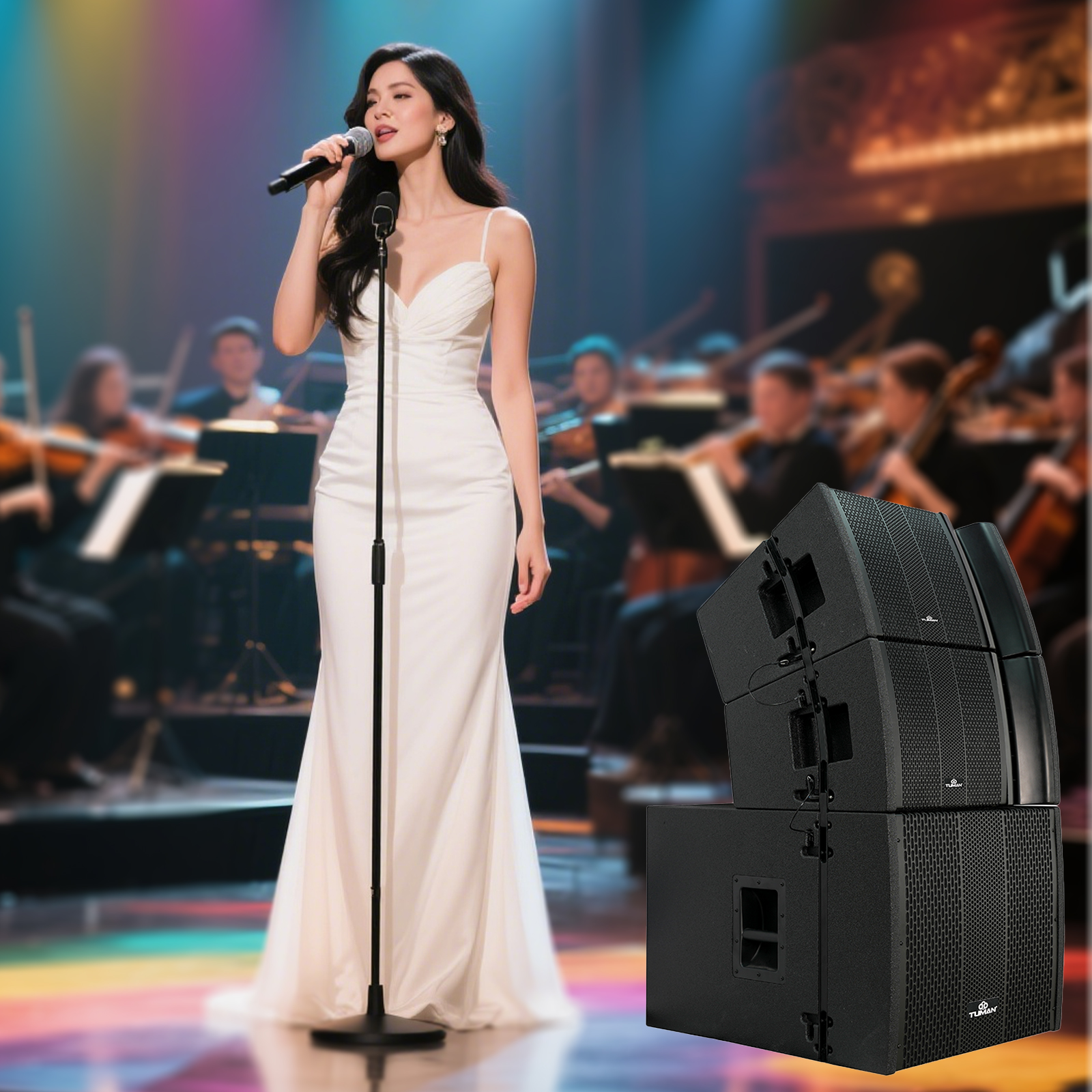 Modelo array lineal (line array): mejora la dispersión y evita que el sonido se pierda hacia el cielo o suelos, manteniendo la claridad y proyección hacia el público
