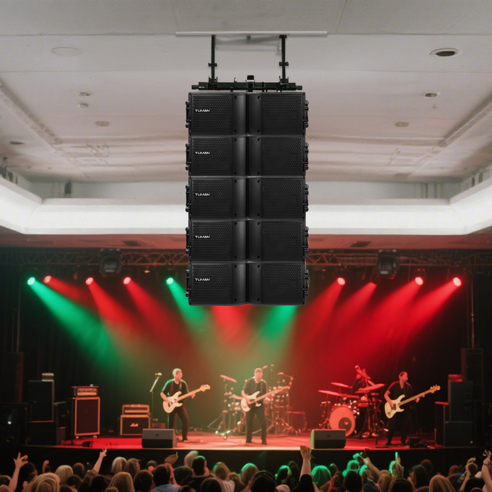 El Tuman TU210LA es un sistema de altavoz activo tipo arreglo lineal (array line) de alta eficiencia, diseñado para aplicaciones profesionales como conciertos, eventos en vivo, instalaciones fijas o sistemas móviles. Fabricado con caja de madera resistente y acabado en pintura polyurea de alto rendimiento.